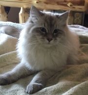 Finagynn is a big handsome goofy Blue Point Snow tiger. He’s not very vocal, but has no problem communicating his wants and needs. Finagynn has produced beautiful babies with amazing personalities that match his own!